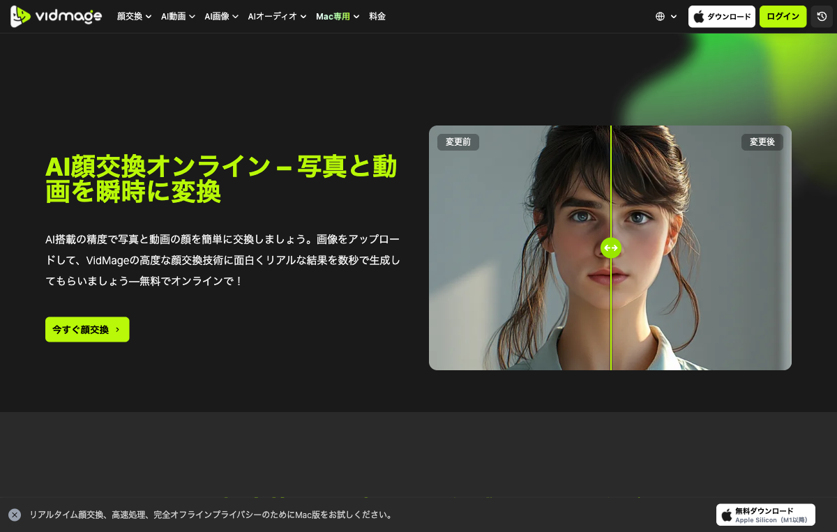AINOW(エーアイナウ)編集部です。今回の記事では、AI顔交換ツール「VidMage AI」を実際に使用し、静止画・動画の顔交換精度、複数顔の同時処理、Macアプリのリアルタイム変換、無料枠・有料プランの使い勝手についてレビューします。 ...