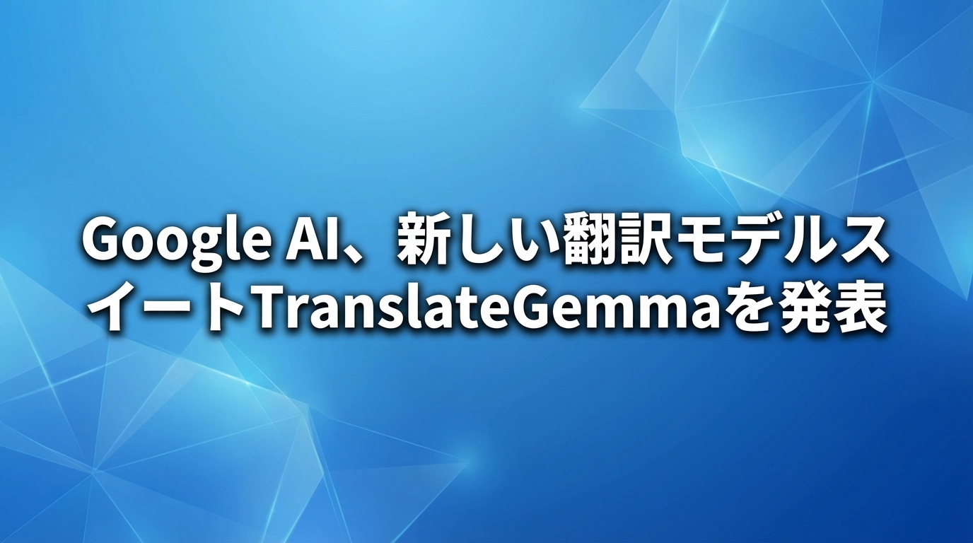 AINOW(エーアイナウ)編集部です。本記事では、GOOGLE_AIが発表した最新のオープン翻訳モデルスイート「TranslateGemma」について、その技術的背景や特徴、使い方、料金体系、デメリット、さらには他の翻訳モデルとの比較や実際...