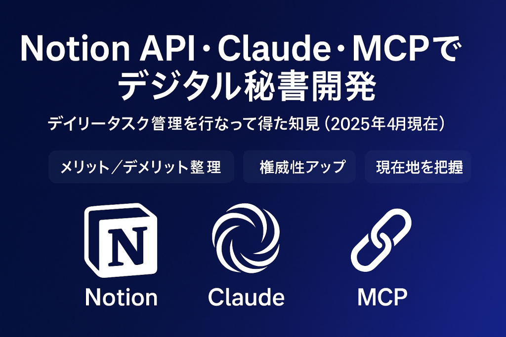 - Notion API、Claude、MCPを組み合わせた「デジタル秘書」の構築方法と運用事例を詳解。