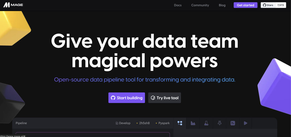 Mage AIは、Pythonで記述されるオープンソースのデータパイプライン構築ツールです。エンジニアやデータサイエンティストの間で急速に支持を集めています。コードベースでの明瞭な記述により、データの抽出、変換、読み込み(ETL)などのプロセスを自動的に実行する仕組みが整備されています。