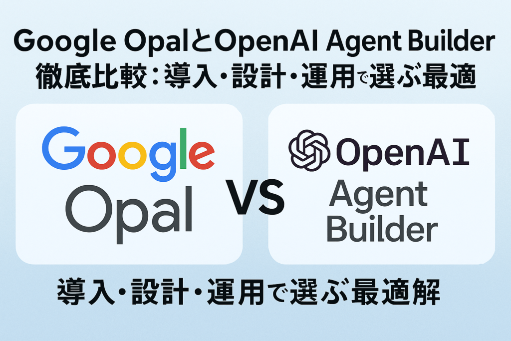 AINOW(エーアイナウ)編集部です。2026年3月時点の情報をもとに、Googleのワークフローサービス「Opal」と、OpenAIのエージェント構築基盤「Agent Builder」の違いや特徴、導入時のポイントを詳しく解説します。この記事では、要件定義から運用、セキュリティ、費用対効果まで、現場で実際に求められる観点を整理し、導入の成功例や実務での注意点、さらには具体的なユースケースも交えて説明します。